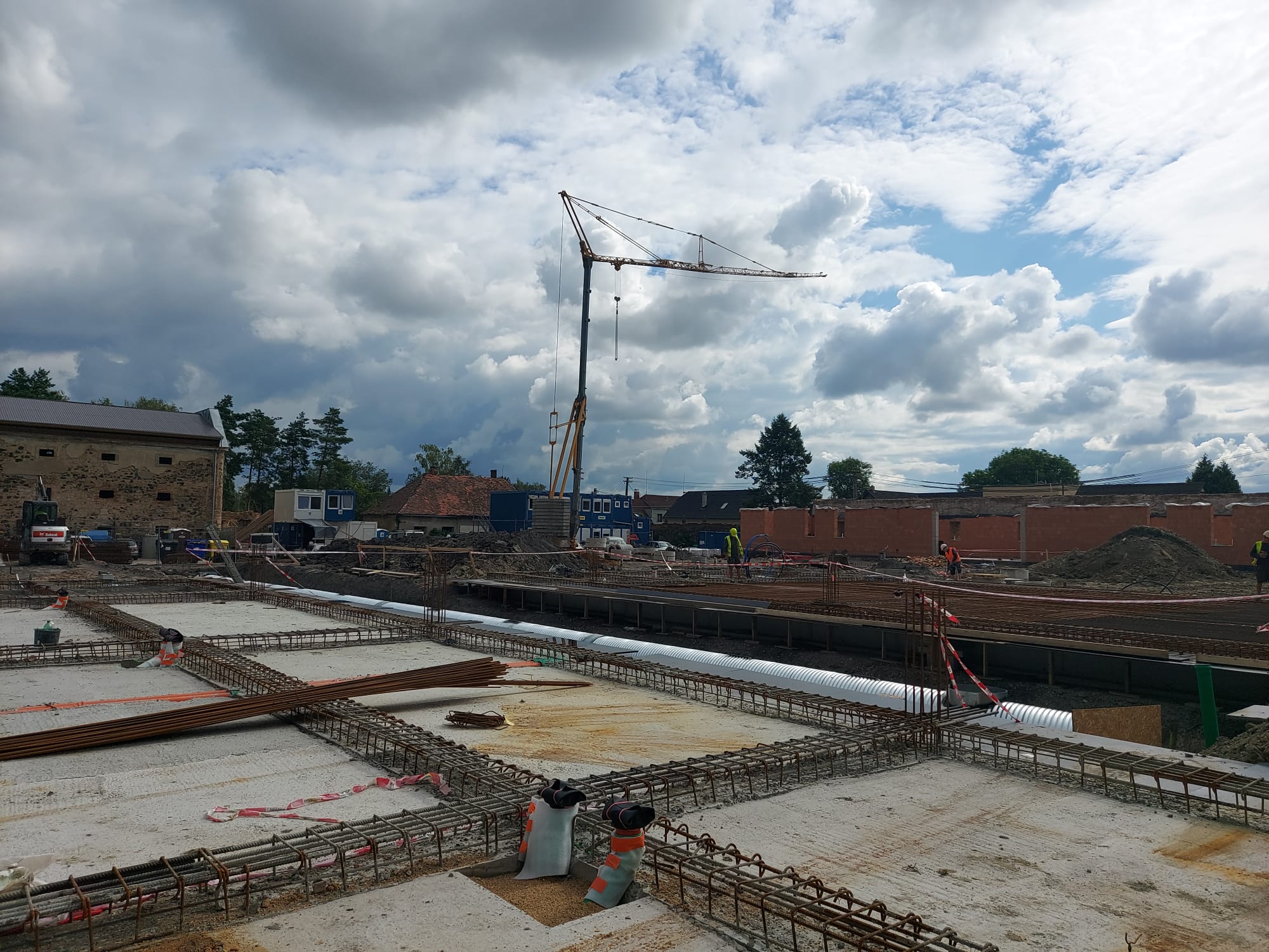 Dnes trochu podmračené počasí, ale na stavbě je vidět výrazný pokrok. Stavba už se pomalu dostává na povrch.