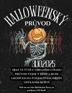 Baštěcké ženy pořádají v pátek 31. 10. 2025 tradiční halloweenskou akci 🎃🦇🕸️