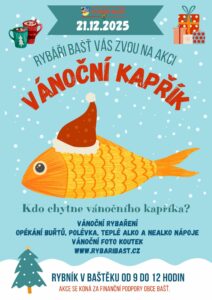 Přijďte si v neděli 21. 12. 2025 od 9 do 12 hodin oddechnout od shonu, poklábosit s ostatními a naladit se na svátky… kapřík už čeká, tak nenechte jeho snahu plavat! Sejdeme se u rybníku v Baštěku.