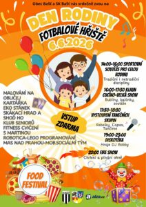 Můžete se těšit na akci Den rodiny, která se uskuteční 6. 6. 2026 na fotbalovém hřišti.
