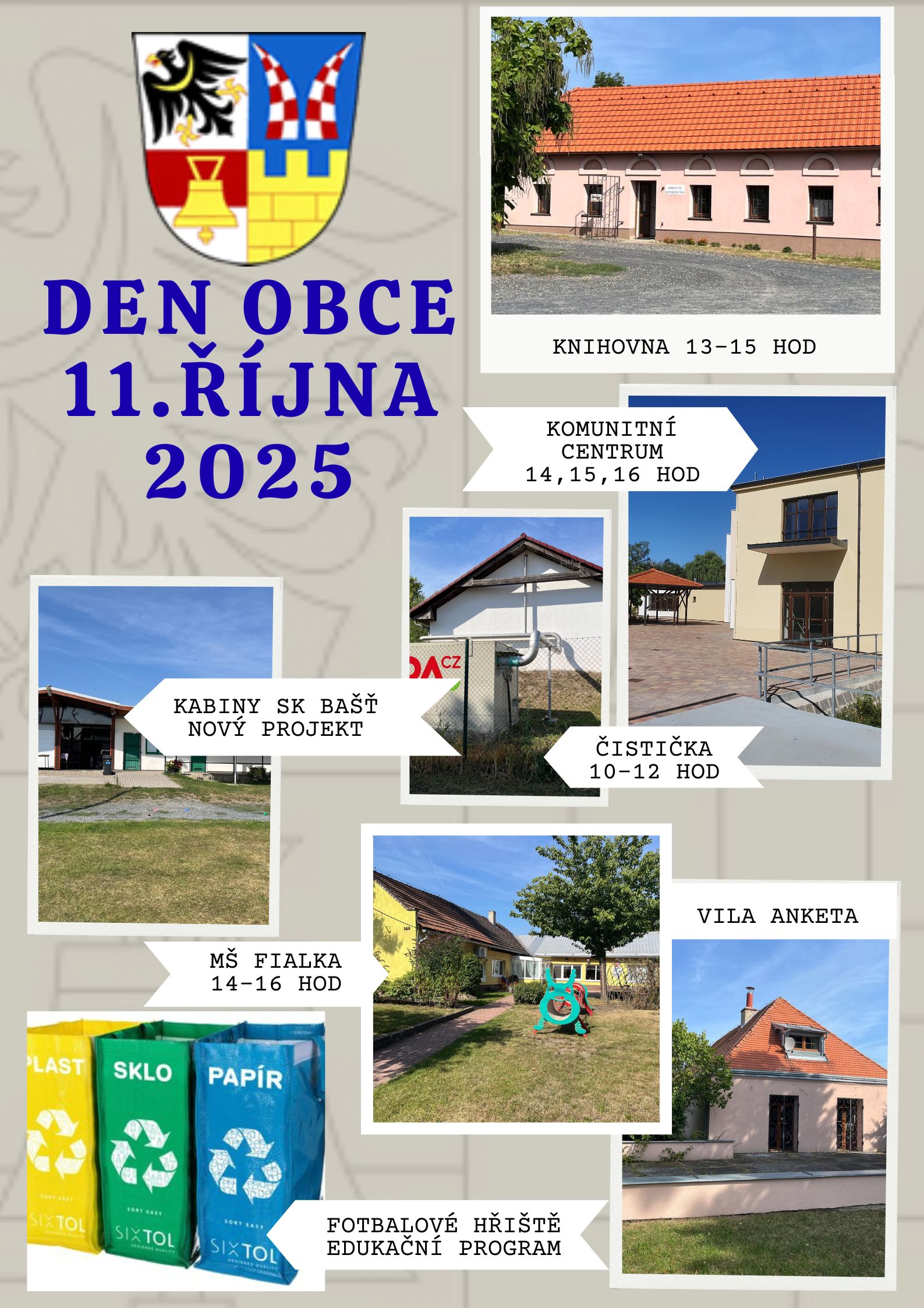 Zveme všechny občany i přátele obce na Den obce Bašť, který se uskuteční v sobotu 11. října 2025.Čeká vás pestrý program plný zajímavých prohlídek, setkání a aktivit pro malé i velké! 🕙 Program dne: 🔹 Čistírna odpadních vod – 10–12 hod.Podívejte se, jak funguje naše čistírna a nahlédněte do jejího provozu. 🔹 Knihovna Bašť – […]